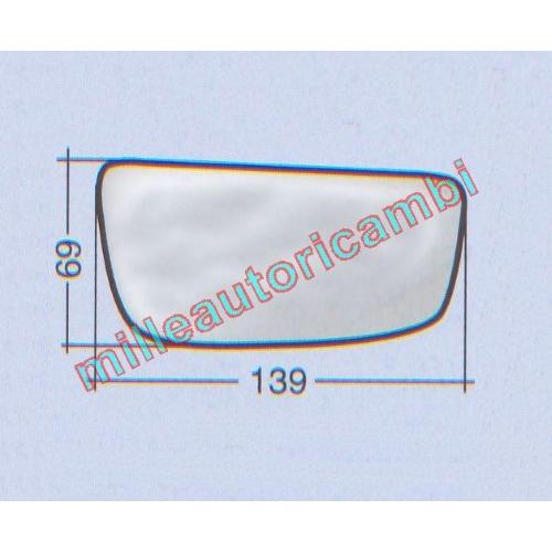 VETRO SPECCHIO RETROVISORE PER FIAT SCUDO DAL 2007 - CITROEN JUMPY DAL 2007 - PEUGEOT EXPERT DAL 2007 DESTRO INFERIORE NUDO ADESIVO