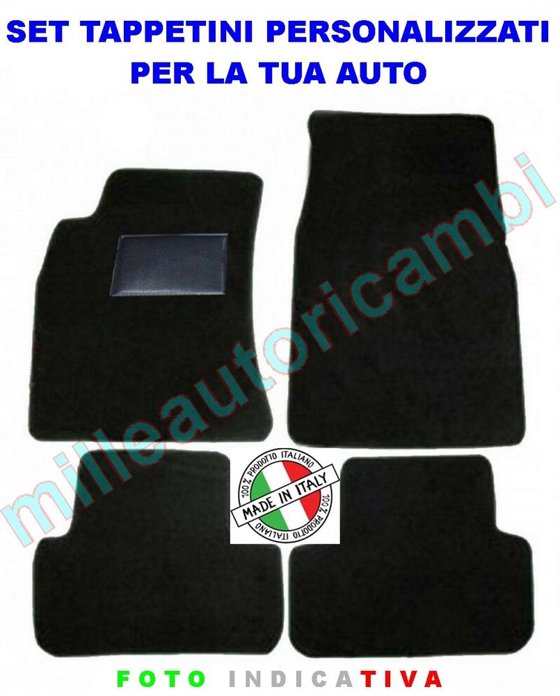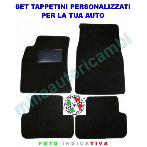 Il nostro set di tappetini (anteriori e posteriori) sono realizzati da aziende Made in Italy al 100%, con feltro agugliato di qualità, battitacco lato guida in plastica ed elegante bordatura perimetrale in tessuto che evidenzia la forma e lo rende sportivo ed elegante. La sagoma del tappeto riprende la forma degli originali ed è compatibile con la vostra auto. Tutti i nostri tappeti vengono inoltre forniti con il fondo antiscivolo e con l'aggiunta del velcro su tutto il bordo del tappeto, risultando così inamovibili!!! Solo per alcune versioni di veicoli è disponibile il sistema di fissaggio originale (clip, fix o bottoni) anche se per l'installazione il velcro lo rende egualmente efficace. La foto dell'inserzione è un esempio del prodotto finito, questi vengono realizzati artigianalmente uno ad uno ed è proprio per questo che il prodotto potrebbe differire leggermente dal vostro, ma non preoccupatevi, voi riceverete il tappetino sagomato in base al vostro modello e serie di auto!